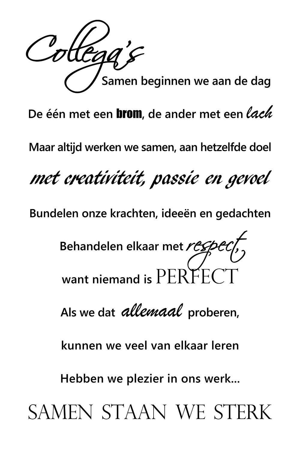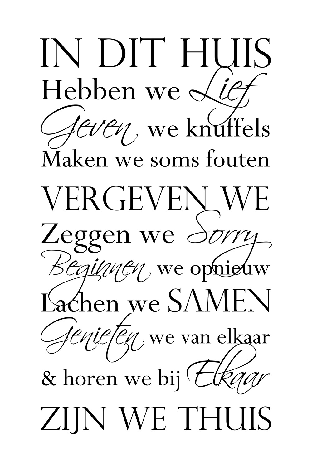 Bekijk de collectie typografiekunst en ontdek hoe woorden kunnen bijdragen aan een persoonlijk en betekenisvol interieur. Voor aankoop of maatwerk, bezoek mijn webshop Teksten op Canvas.